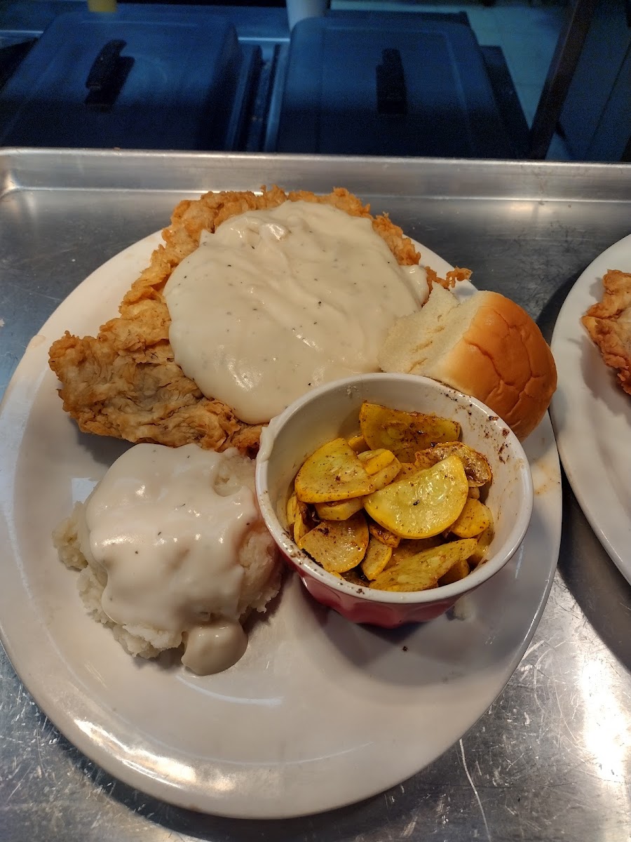 The menu leans into home-style cooking in the best sense of the phrase. Breakfast plates arrive hot and generous, with eggs cooked exactly how you ask, biscuits that clearly weren’t pulled from a freezer, and gravy that tastes like someone’s been perfecting it for years. Lunch brings comfort classics like chicken-fried steak, burgers with a proper sear, and daily specials that change based on what’s fresh and practical. I once watched a server explain a special to a regular, mentioning it was based on a family recipe, and that moment said more than any written review ever could.